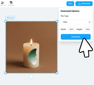 Upload your candle photo or blank template, apply your label design using the mockup tool, adjust size/placement, and download the high-resolution result for your product listings or branding.