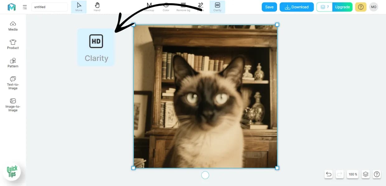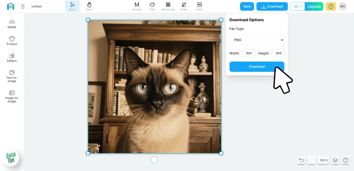 Download the upscaled image or proceed to customize it further within Mockuplabs' mockup editor.