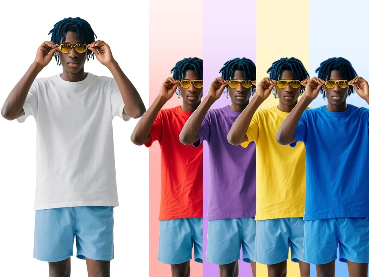 Get Started FreeEasily recolor t-shirts, hoodies, or hats to reflect your exact brand colors using our AI color changer. No need for multiple photoshoots—just upload once and apply any HEX or RGB value.